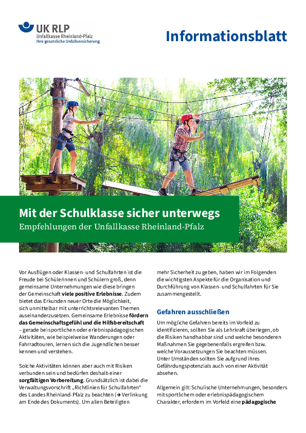 Empfehlungen der Unfallkasse RLP (PDF 148 KB)