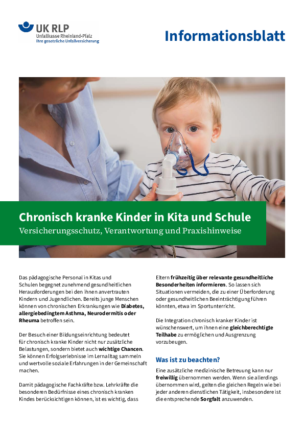 Wichtige Hinweise haben wir in unserem Informationsblatt „Kinder mit chronischen Erkrankungen” für Sie zusammengestellt (siehe rechts).