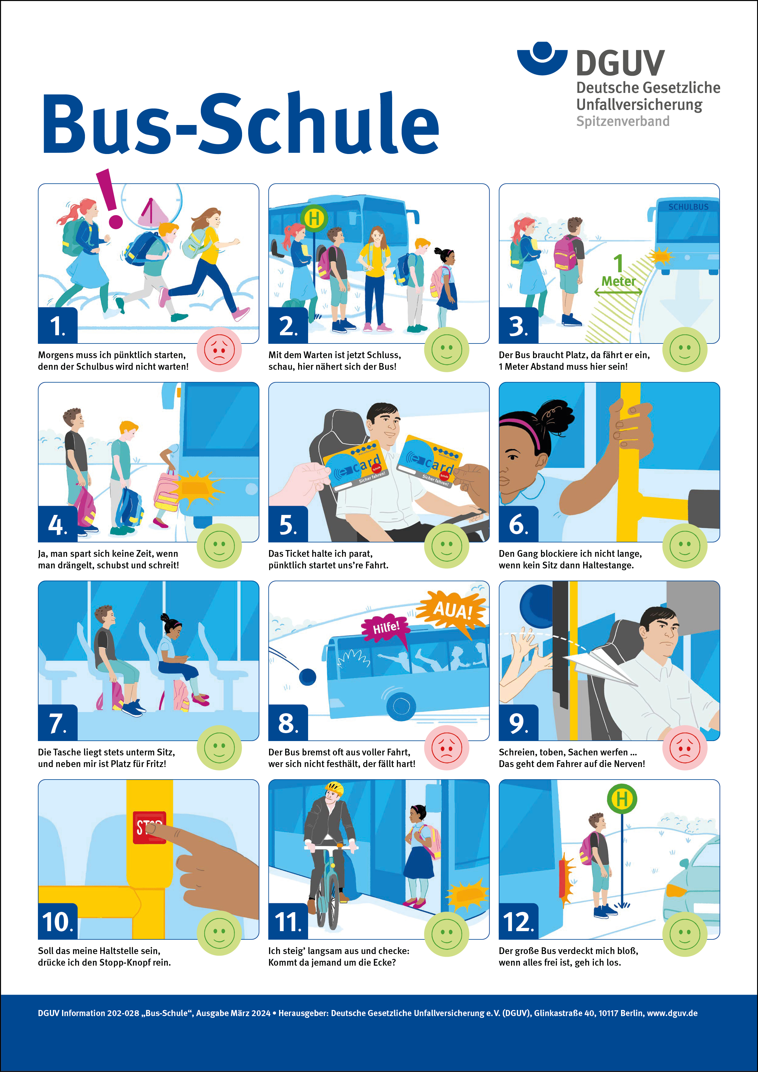Wir unterstützen Lehrkräfte bei dieser wichtigen Aufgabe: Mit unserer Broschüre „BusSchule – Clever mit dem Bus fahren!“ bieten wir Ihnen eine Handlungshilfe für den Unterricht, mit der Schülerinnen und Schüler mit Spaß – auch fächerübergreifend – Verkehrserziehung erfahren können. Sie lernen z. B. Verhaltensweisen und -regeln durch Rollenspiele, im Deutsch-, Mathe- oder Englischunterricht kennen.